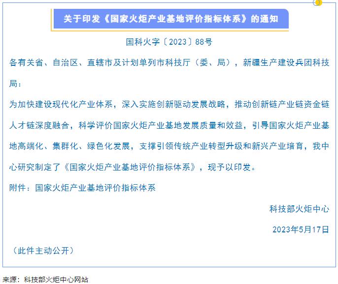 【政策资讯】关于印发《国家火炬产业基地评价指标体系》的通知