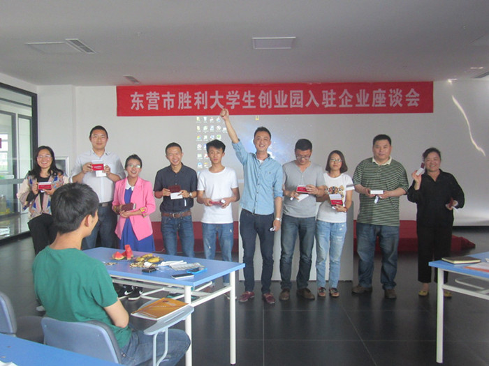 2015年5月16日,东营市胜利大学生创业园举行了入驻企业交流活动,此次活动的目的是让园区创业者相互认识,相互了解,消除彼此间的隔阂。活动以游戏的方式进行,每位创业者做了简单的自我介绍,大家对彼此有了一个初步的认识。活动期间上海浦发银行东营分行的工作人员向创业者介绍了有关金融方面的知识。现场也穿插了抽奖活动的环节。活动在轻松愉快的氛围中结束。