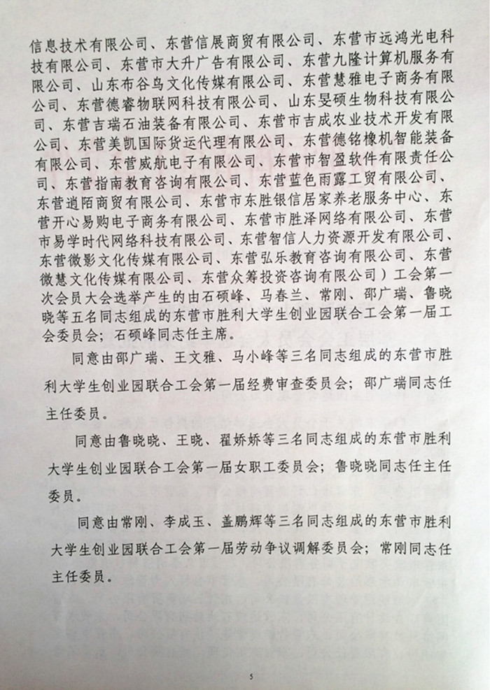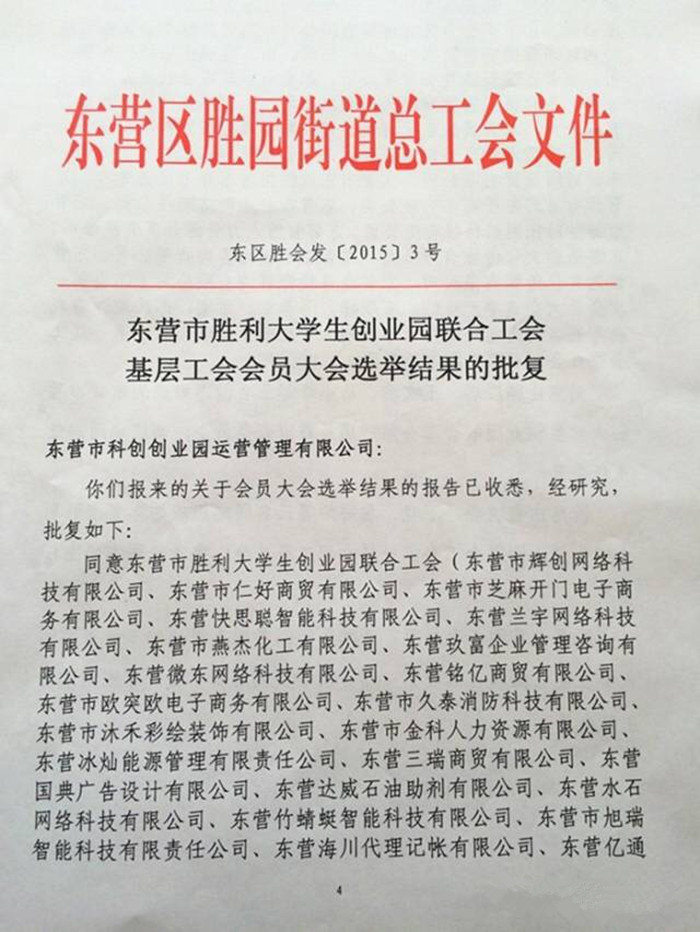 热烈庆祝东营市胜利大学生创业园联合工会正式成立